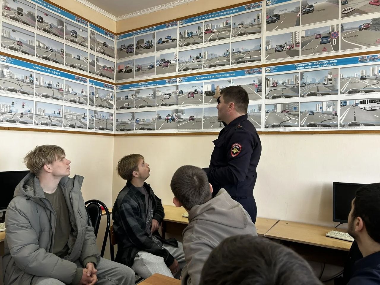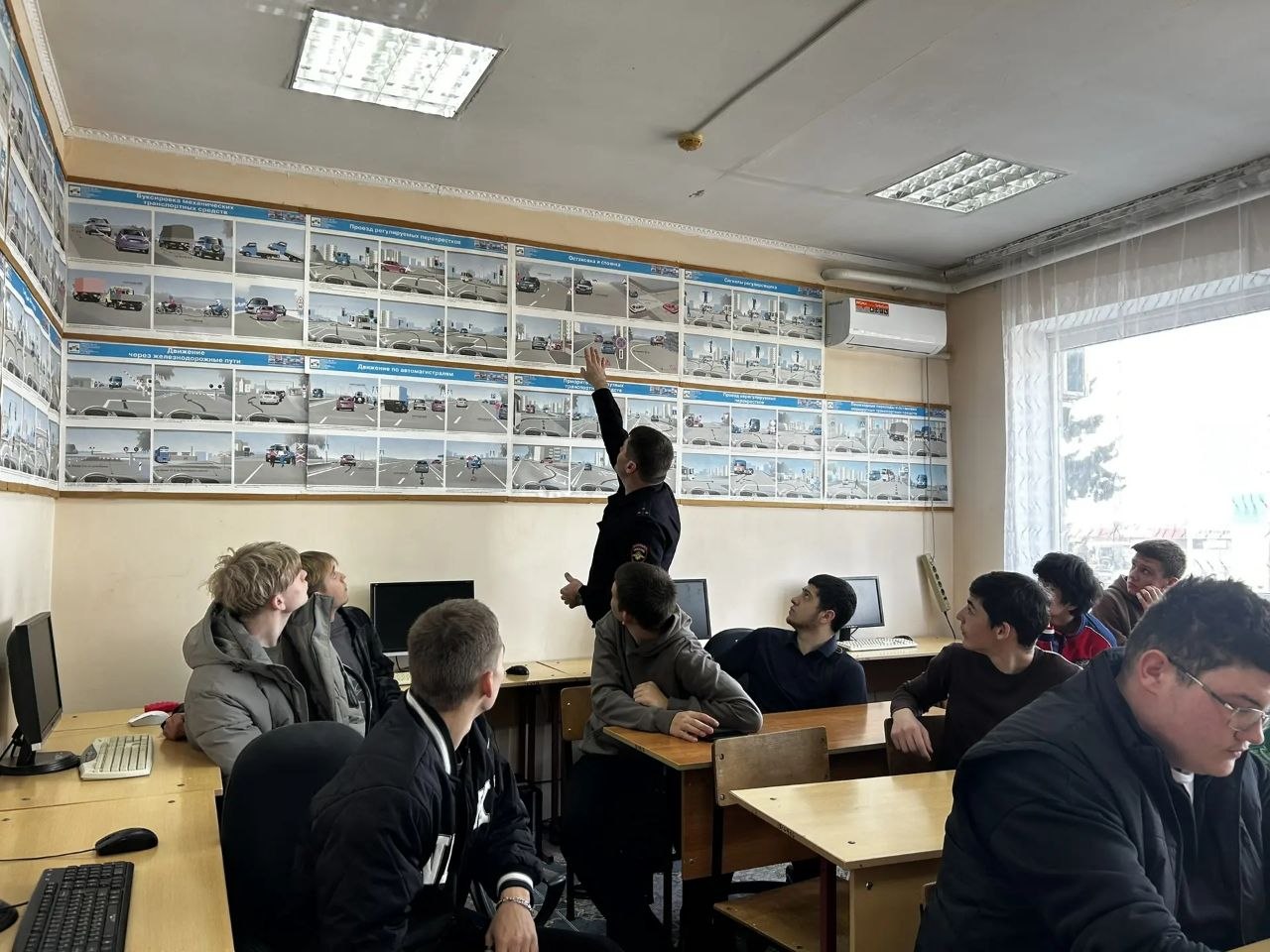 Участие госавтоинспекторов в процессе обучения будущих водителей стало нормой для специализированных школ. Курсанты становятся участниками различных мероприятий, проводимых сотрудниками Госавтоинспекции. В рамках беседы будущим водителям рассказали о разных