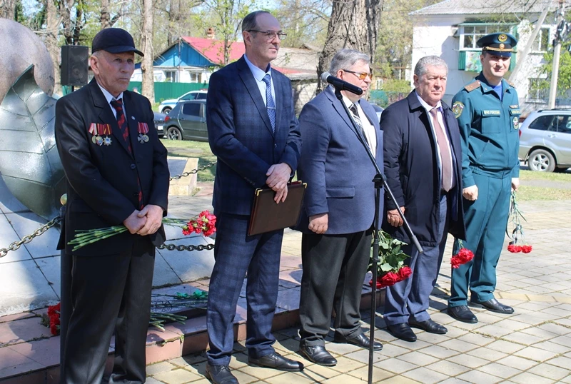 Присутствующие почтили минутой молчания память погибших и умерших от последствий аварии ликвидаторов и возложили цветы к монументу «Памяти чернобыльцев».