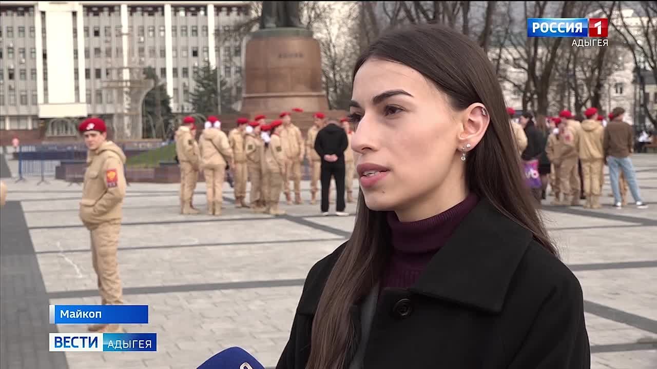 Сегодня - День воссоединения Крыма с Россией. К годовщине исторического события в Майкопе прошел праздничный флешмоб.