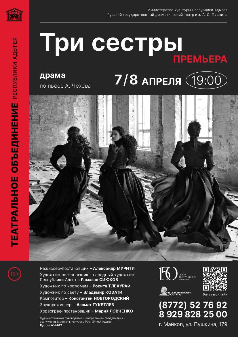 В Театральном объединении Адыгеи готовят премьеру спектакля «Три сестры» по пьесе А. П. Чехова. В режиссерском кресле — Александр Мурити, для него это уже четвертая работа в ТОРА.