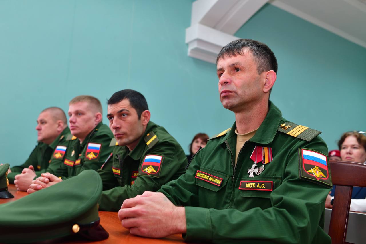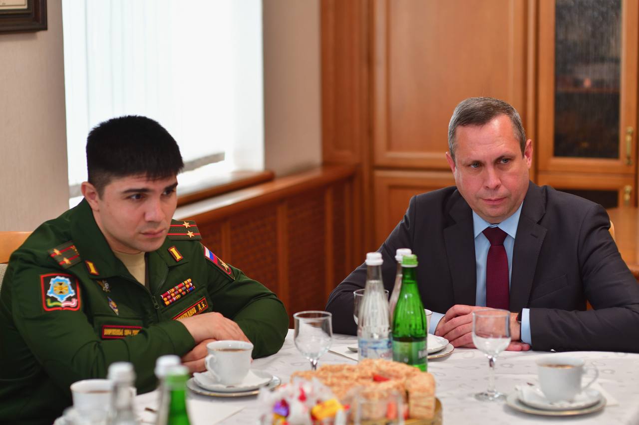 Вместе с представителями командования ЮВО с гордостью вручили Роману Сергеевичу высокую награду. А его отцу и супруге — благодарственные письма и цветы. За подвигом воина всегда стоят те, кто его ждёт, верит и любит, — его семья. Именно такие героические примеры — лучшее воспитание для наших детей.