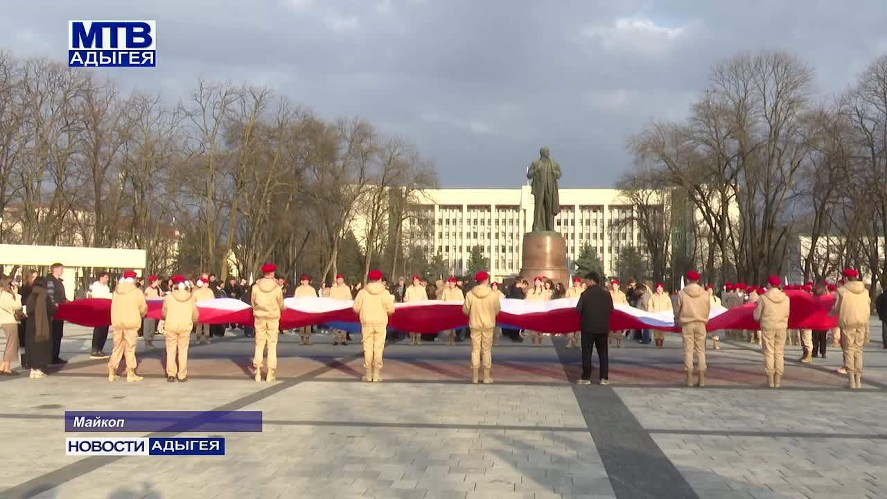 Двенадцатой годовщине воссоединения Крыма с Россией в центре Майкопа посвятили тематический флешмоб. Его инициатором является многофункциональный центр «Молодежь Адыгеи». В массовой патриотической акции приняли участие активисты общественных организаций, студенты и школьники.