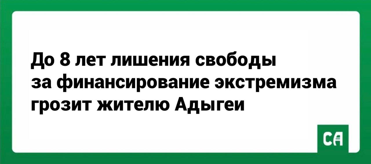 В отношении мужчины в следственном управлении Следственного комитета России по Адыгее возбуждено уголовное дело по ч. 1 ст. 282.3 УК РФ (сбор и предоставление средств, заведомо предназначенных для обеспечения деятельности экстремистской организации). Ему грозит до 8 лет лишения