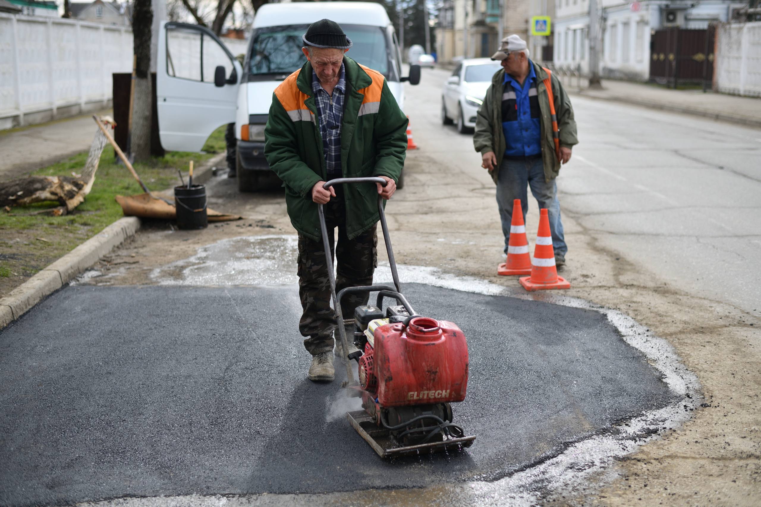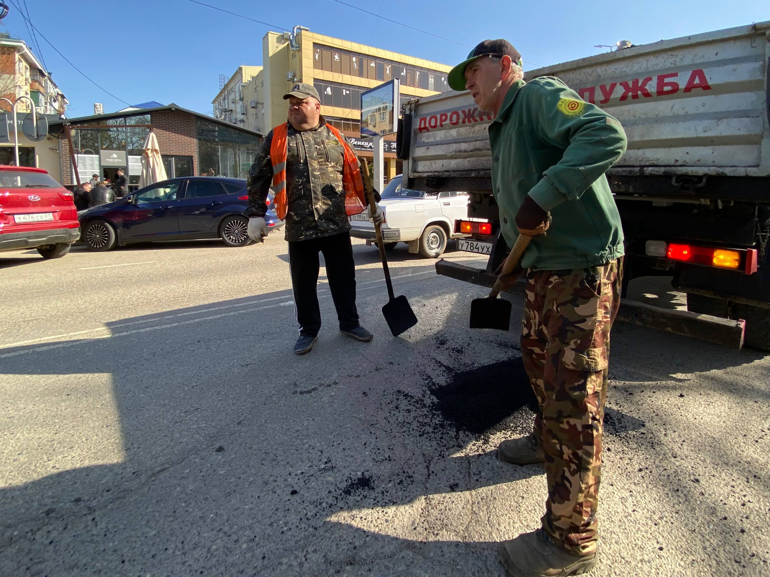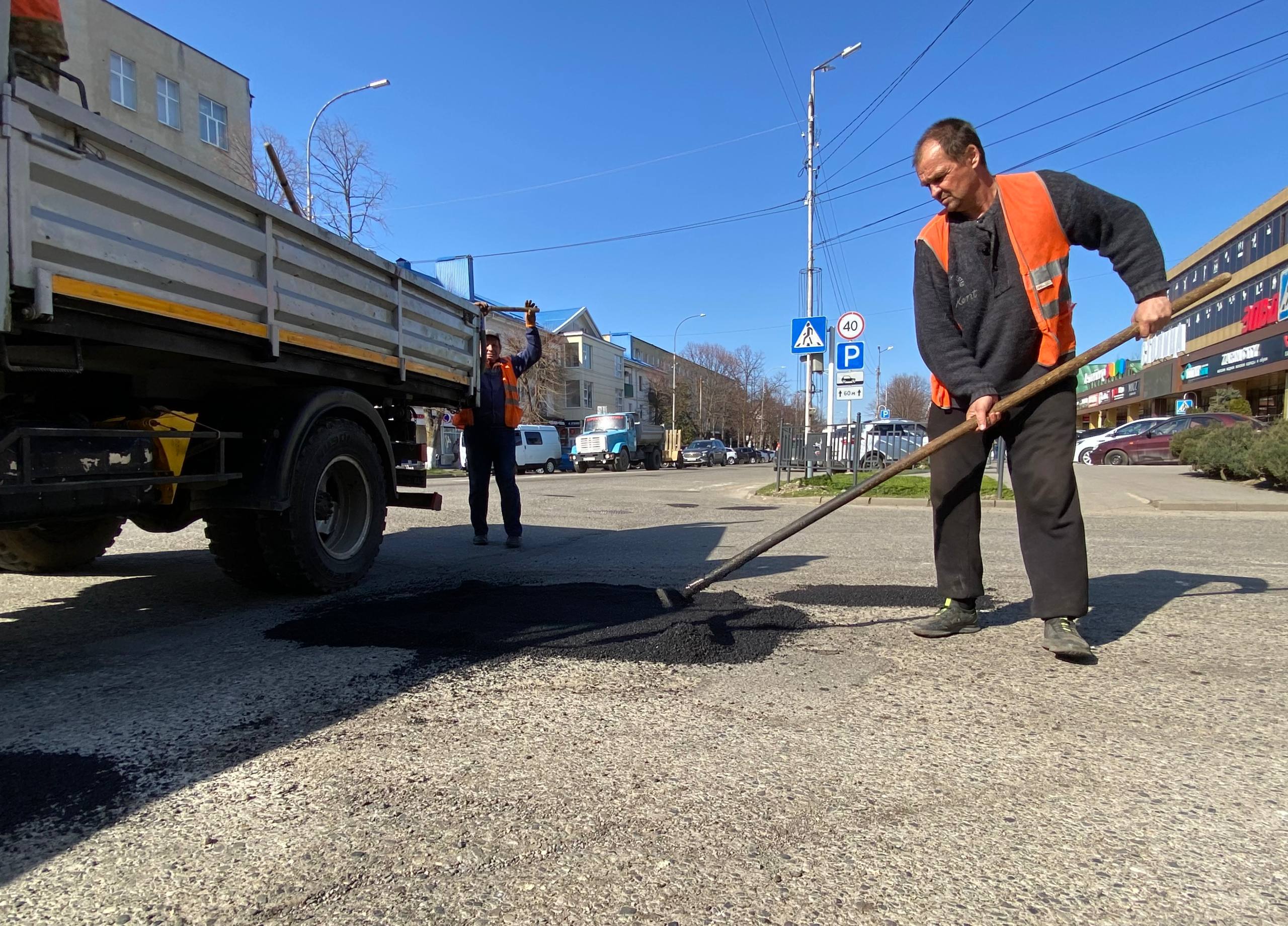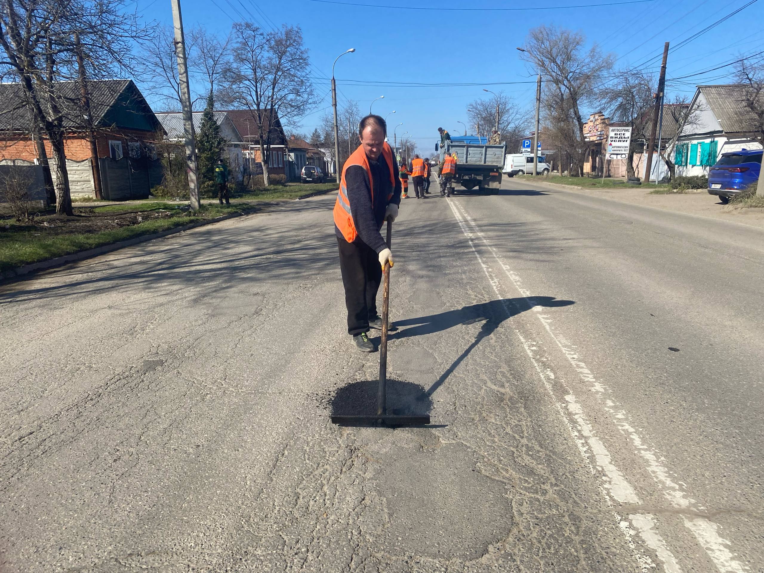 После зимнего периода дорожные службы продолжают плановые работы на улично-дорожной сети города. В первую очередь приводят в порядок участки с интенсивным движением, где покрытие требует оперативного восстановления.