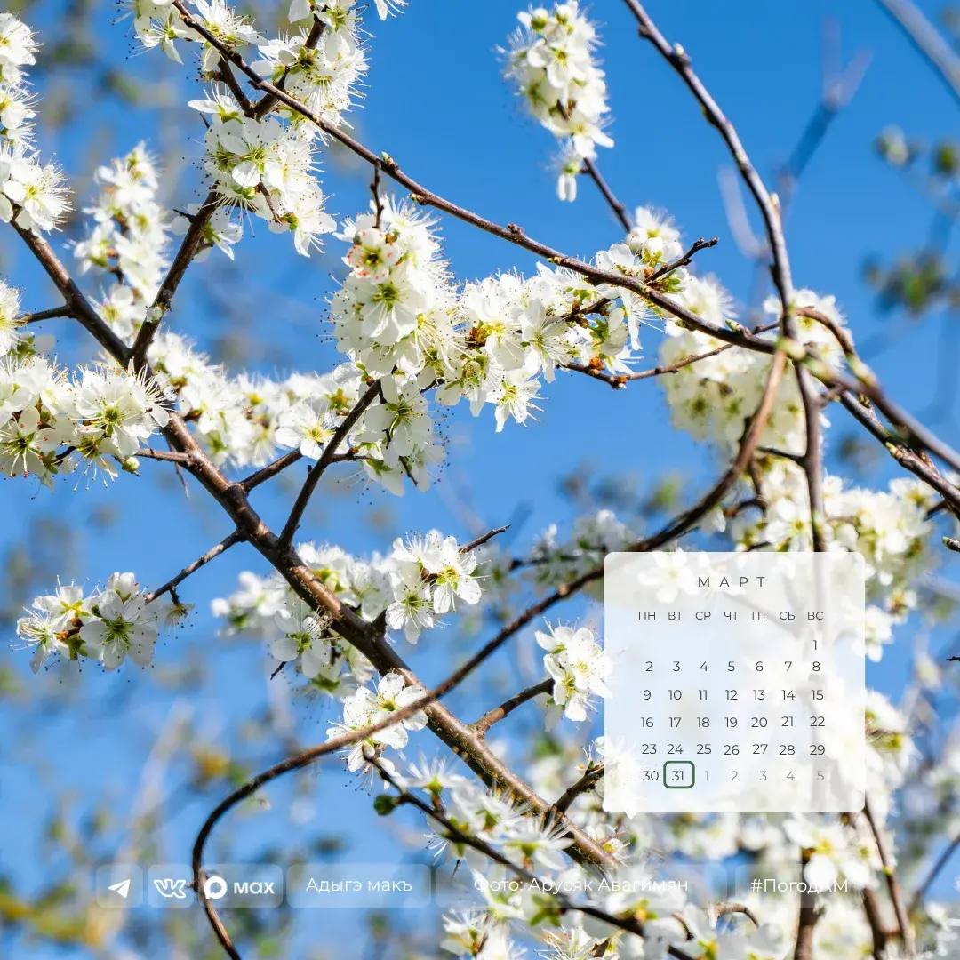 31 марта в Адыгее переменная облачность, местами ожидается дождь.