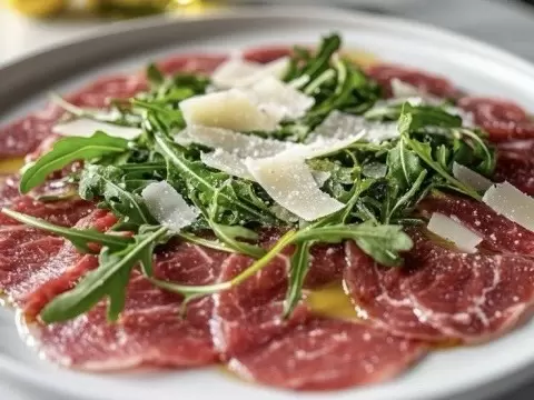 Праздничный стол может стать ещё более изысканным благодаря карпаччо из говядины, дополненному нежной рукколой и пармезаном. Это блюдо не просто закуска, а настоящий гастрономический шедевр, который можно удобно подавать на хлебцах Baker House. Оно станет идеальным акцентом, как на новогоднем празднике, так и в любой вечерней встрече с друзьями.