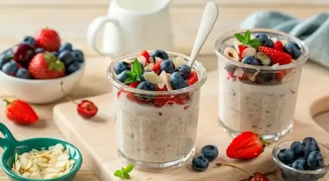 - Орехи и семена: Подсластите овсянку столовой ложкой меда и добавьте грецкие или миндальные орехи, а также семена чиа или льна, чтобы обогатить блюдо полезными жирами и белками.