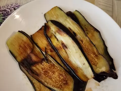 Приготовление: Баклажаны запекаются в духовке до мягкости, затем очищаются от шкурки и нарезаются кубиками. Шампиньоны нарезаются ломтиками и обжариваются на сухой сковороде до золотистой корочки. Лук шинкуется кольцами. Все ингредиенты соединяются, заправляются лимонным соком, солятся и перчатся по вкусу.