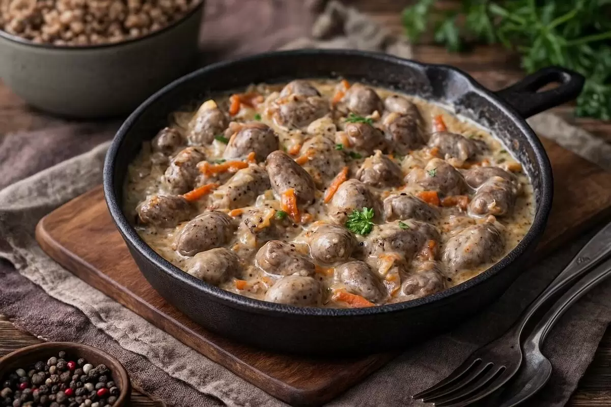 Некоторые блюда запоминаются надолго благодаря простоте готовки и удивительному вкусу. Куриные сердечки — именно из таких. Когда они тушатся в сметанном соусе с луком и морковью, кухня наполняется растроганным ароматом домашнего угощения, создавая атмосферу тепла и уюта.