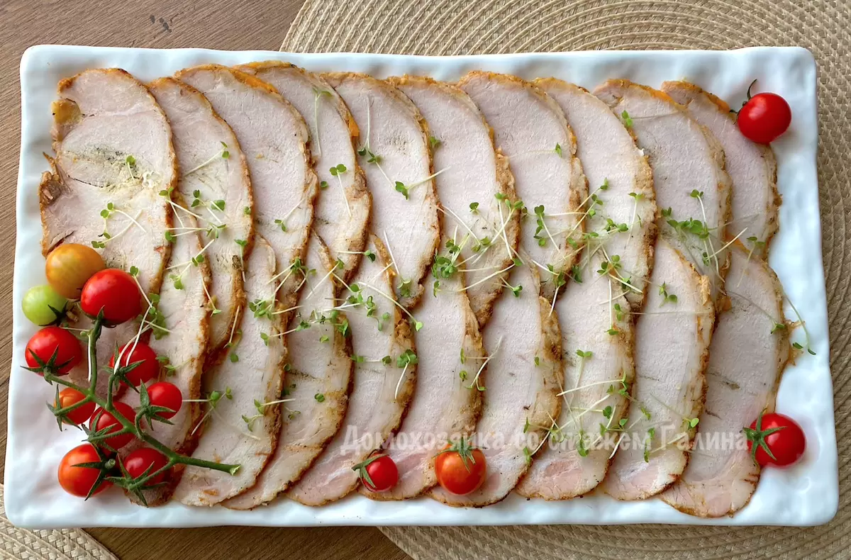 По завершении запекания, свинина оставляется в духовке почти до полного остывания. После этого мясо извлекается из рукава, оборачивается пленкой и помещается в холодильник как минимум на пять часов. Охлажденное мясо будет легко нарезаться на тонкие ломтики, что идеально подходит для подачи на стол — как в виде нарезки, так и для бутербродов на завтрак. При желании, нарезанные ломтики можно дополнить соусами и свежими овощами, что сделает блюдо еще более привлекательным.