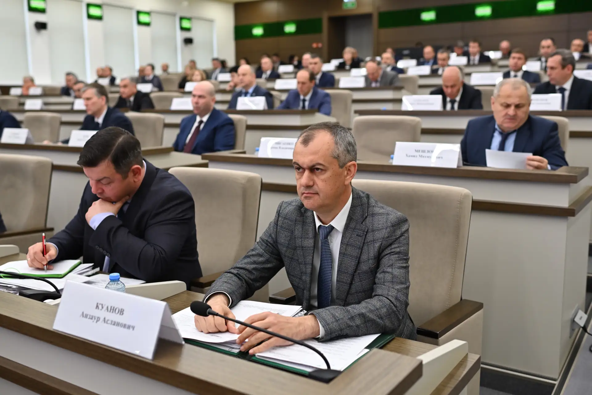 С основным докладом выступил председатель Кабинета министров РА Анзаур Керашев. По информации премьера, в текущем году на территории республики планируется строительство, капремонт и реконструкция 99 социально значимых объектов, из них по 67 уже заключены контракты на производство работ, по 20 объектам ведутся конкурсные процедуры или процесс заключения контрактов. Всего же, с учётом благоустройства общественных и дворовых территорий и ремонта дорог количество объектов достигает 155 единиц, из них законтрактован 101.