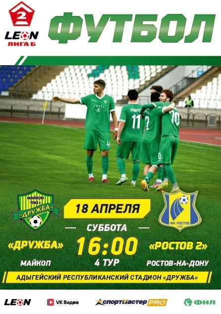 Во-первых, отличный футбол при замечательной весенней погоде, который покажут «Дружба» и «Ростов-2». Этот матч начнется в 16.00.