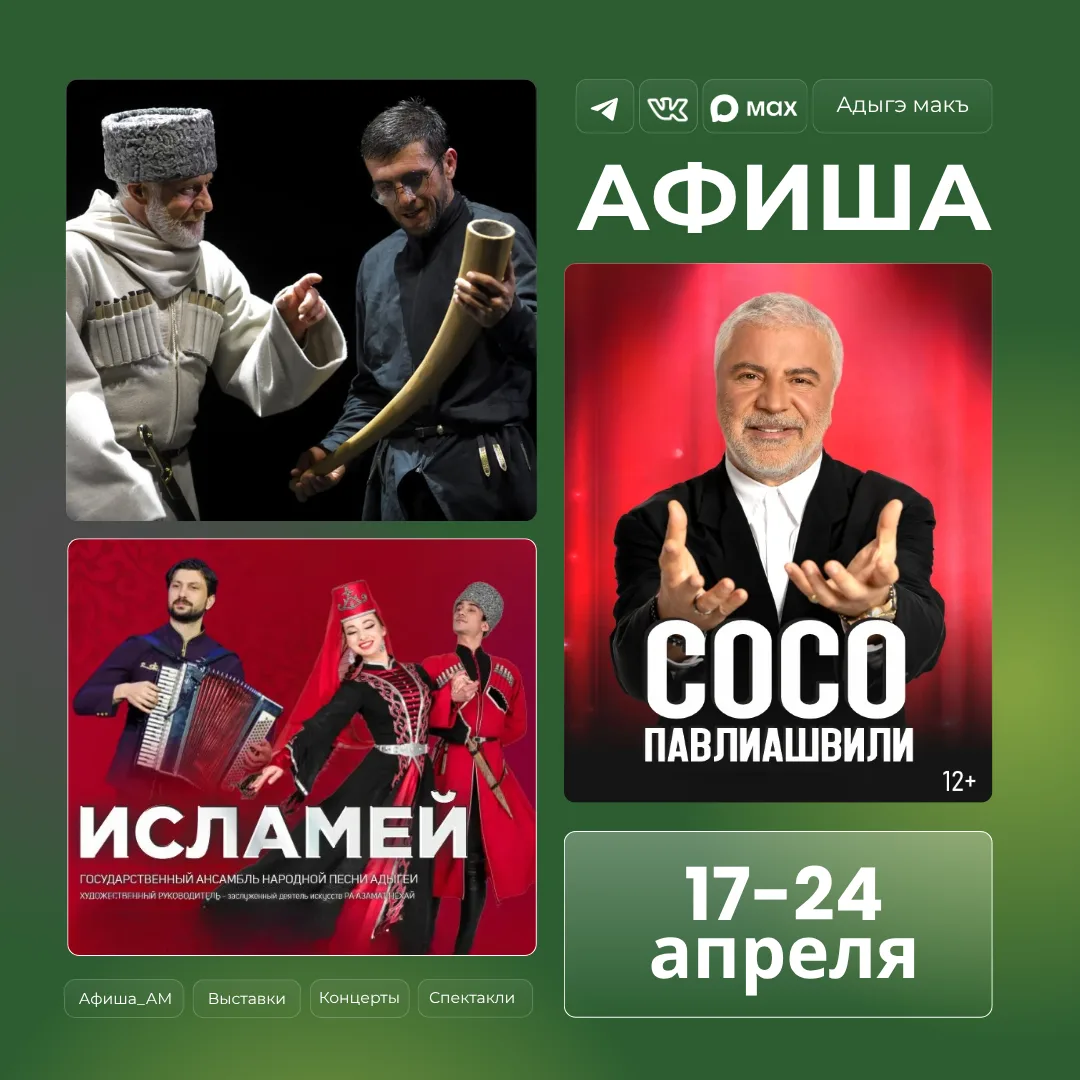 Традиционная афиша культурных событий уже на ваших экранах! Впереди длинные выходные — самое время спланировать досуг вместе с «Адыгэ макъ»