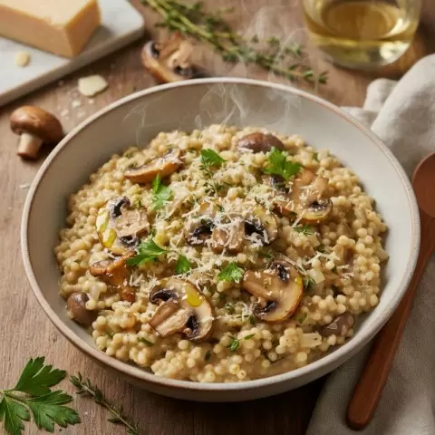 Пшенетто – это свежий взгляд на традиционное ризотто, где в качестве основы используется пшено. Благодаря этому ингредиенту, блюдо обретает необыкновенную текстуру и ореховый привкус. В данном рецепте пшенетто подается с грибами, однако можно легко адаптировать его, заменив грибы на ваши любимые овощи, такие как спаржа или тыква.