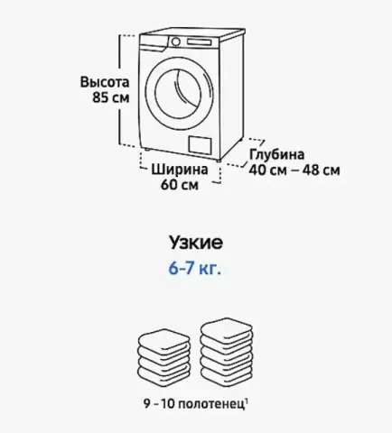 - Для машины на 6–8 кг: два комплекта белья или большая загрузка одежды.