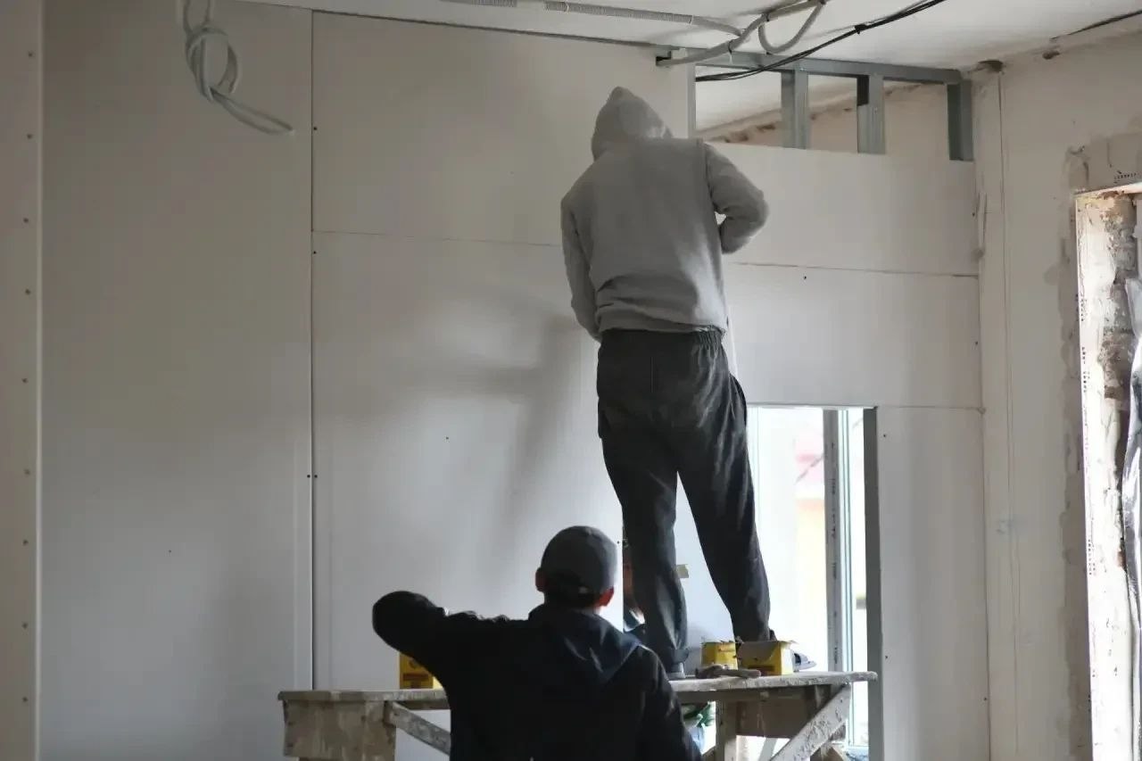 На территории детского сада завершены демонтажные работы. Заменены оконные блоки, выполнен монтаж системы водоснабжения, водоотведения, проводится монтаж отопления, завершена предчистовая отделка стен помещений. Сейчас ведётся ремонт потолочных покрытий, выполняются фасадные, электромонтажные работы, устанавливаются системы безопасности и ограждение.