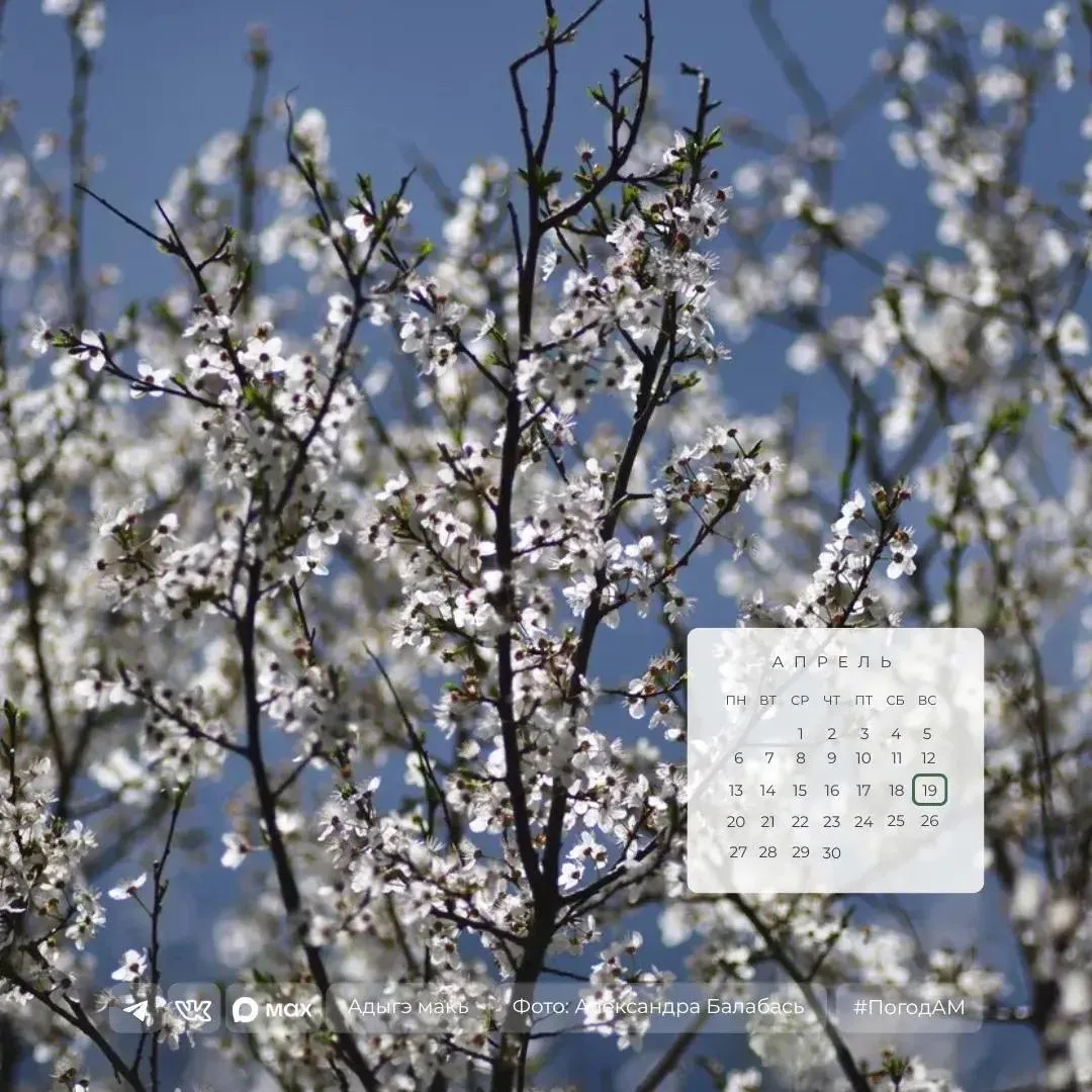 19 апреля в Адыгее переменная облачность, без осадков.
