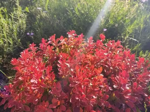 - Барбарисы: эти компактные растения нашли свое почетное место в саду. Небольшие кустики, посаженные три года назад, с удовольствием радуют глаз, сохраняя скромные размеры и не требуя особого ухода.