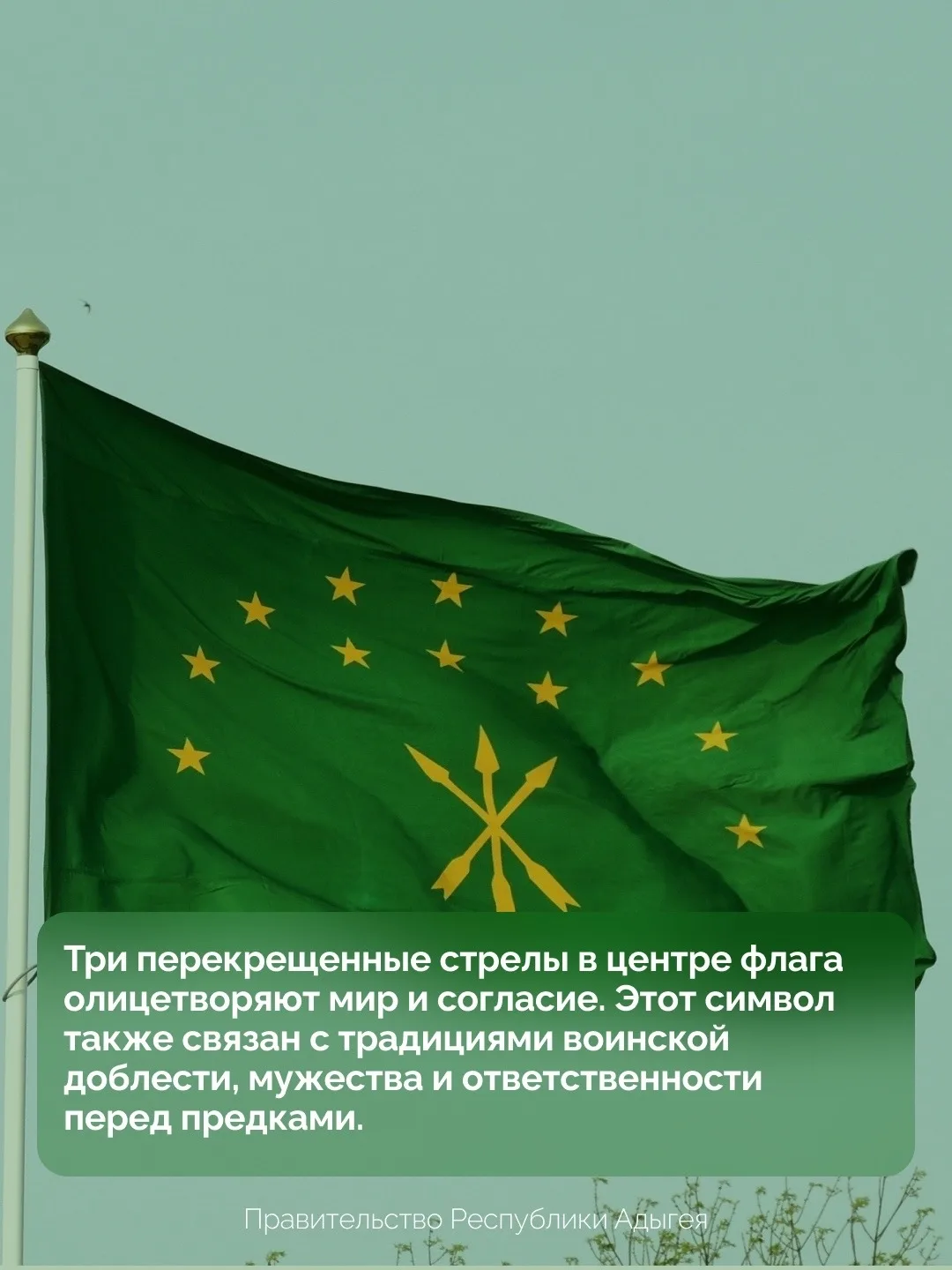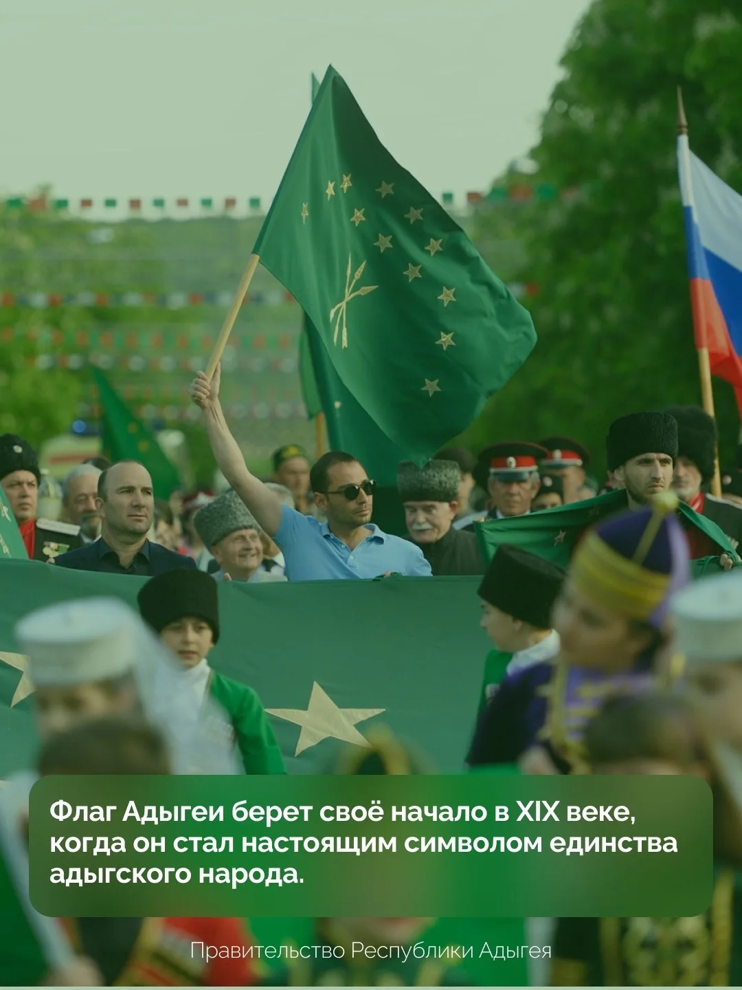 «Флаг объединяет поколения, связывает прошлое с настоящим и вдохновляет на новые свершения. Под этим знаменем мы все — одна большая семья, бережно хранящая многовековые традиции, уважающая предков и строящая общее будущее в составе нашей великой страны — Российской Федерации», — отмечает в своём поздравлении Глава Адыгеи Мурат Кумпилов.