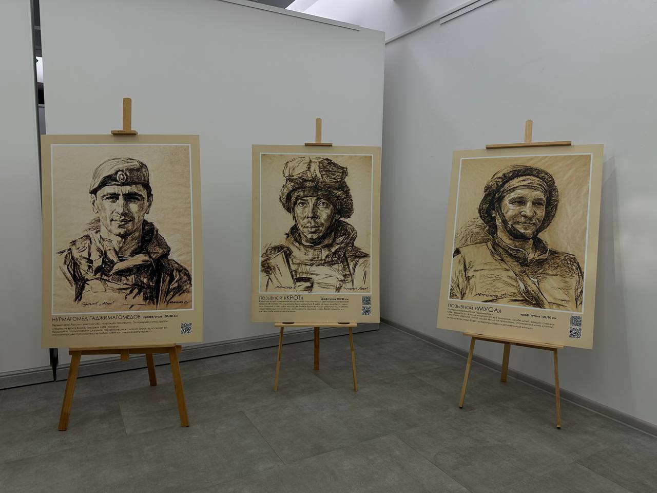 В экспозиции представлены графические работы Сергея Марченко, изображающие реальных участников СВО. Художник нарисовал ветеранов и героев спецоперации угольным карандашом на крафтовой бумаге. По словам автора, работы символизируют Донбасс как сердце России, угольный край, а художественный прием подчеркивает его эмоциональную связь с регионом и его жителями.